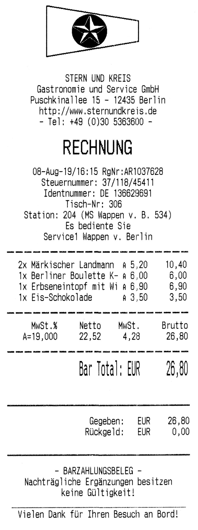 ...gibt es statt der wohl jederman bekannten Speisen und Getränkehier meinen Verzehrzettel als lupenreinen Beweis!