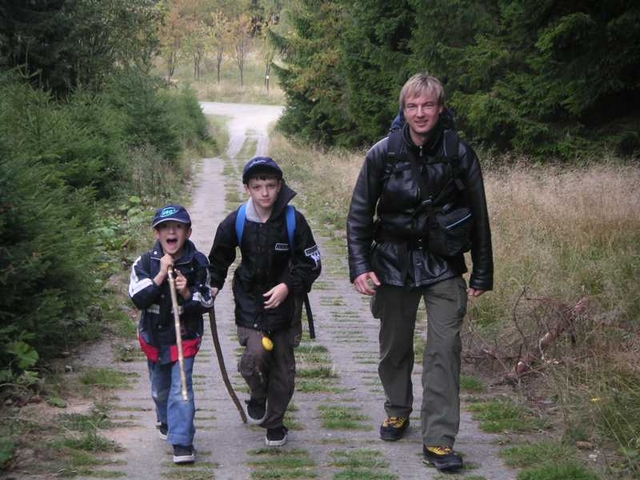 Mein unerschütterlicher Mitmacher Andreas hat nun auch zum ersten Mal seine Söhne Christian und Oliver mitgebracht und so waren wir an einem richtig goldigen Herbsttag gestartet - wie immer in Ilsenburg. Hier schon nach der Rast an der Scharfensteinklippe.