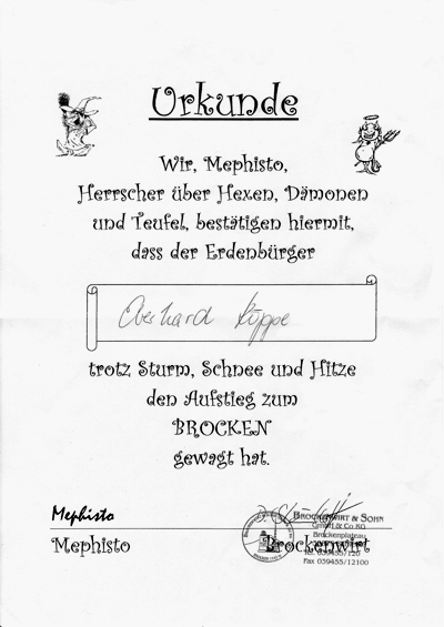 Dafür bedanke ich mich an dieser Stelle ganz herzlich beim "Brockenwander-Weltmeister".
