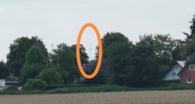 Zwischen Blumberg und Ahrensfelde sieht man den Fernsehturm in 14 Km Entfernung.