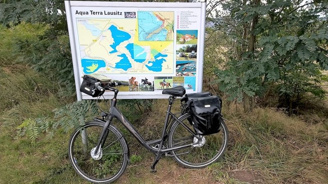 Die letzte Etappe wurde richtig spannend und sogar hochgefährlich, siehe weiter unten!Hier die Talsperrenmauer vom Stausee Spremberg und ein Jachthafen,