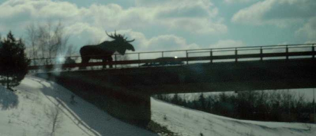 So, nun ist Schluß! Nur noch ein Bild von "Nessi", ja das gibt es nicht nur in Schottland!Der Elch auf der Brücke ist extra ruhig stehen geblieben, damit wir ihn im Vorbeifahren auch richtig ins Bild bekommen - dieser eitle Geselle!
